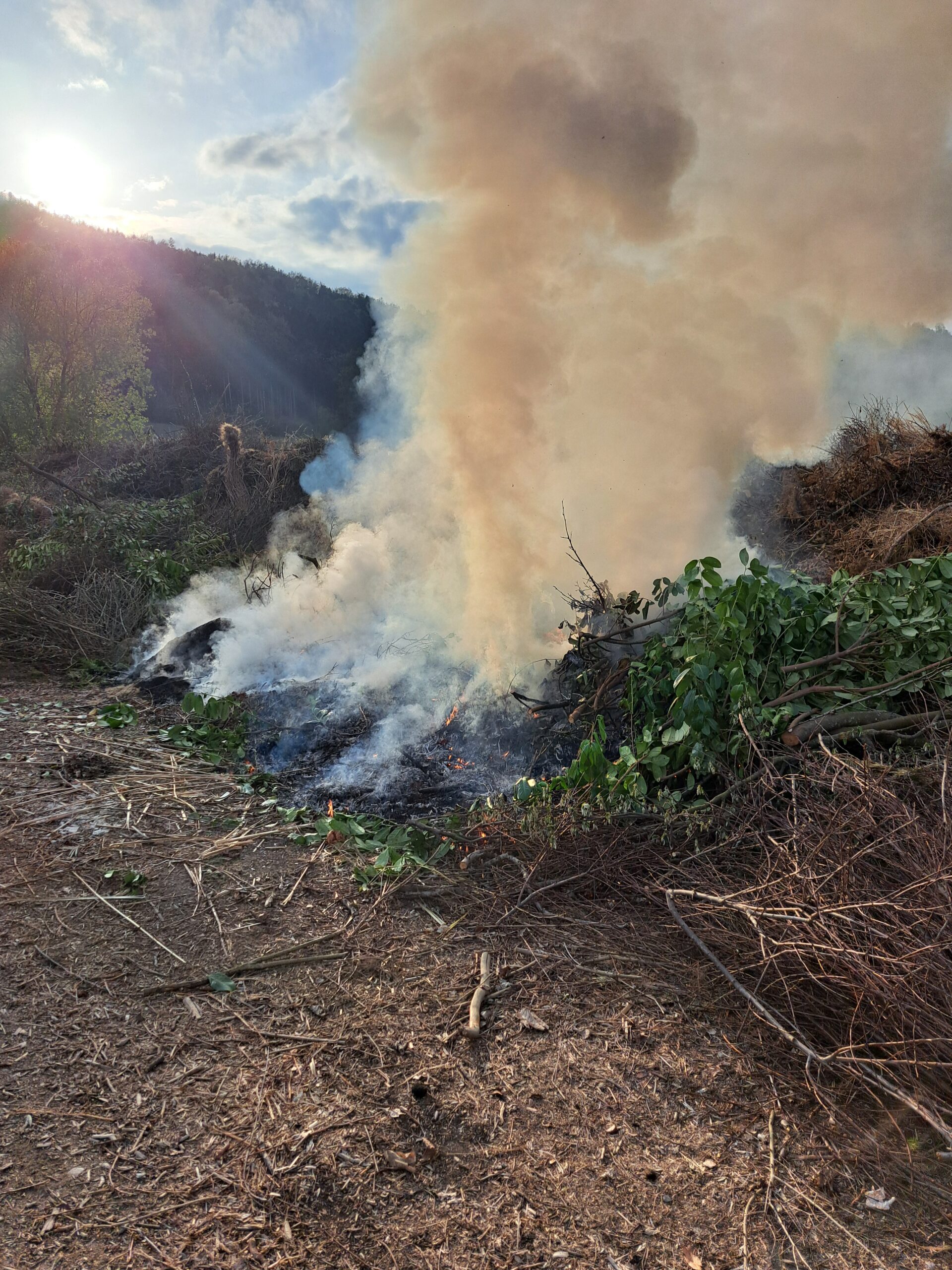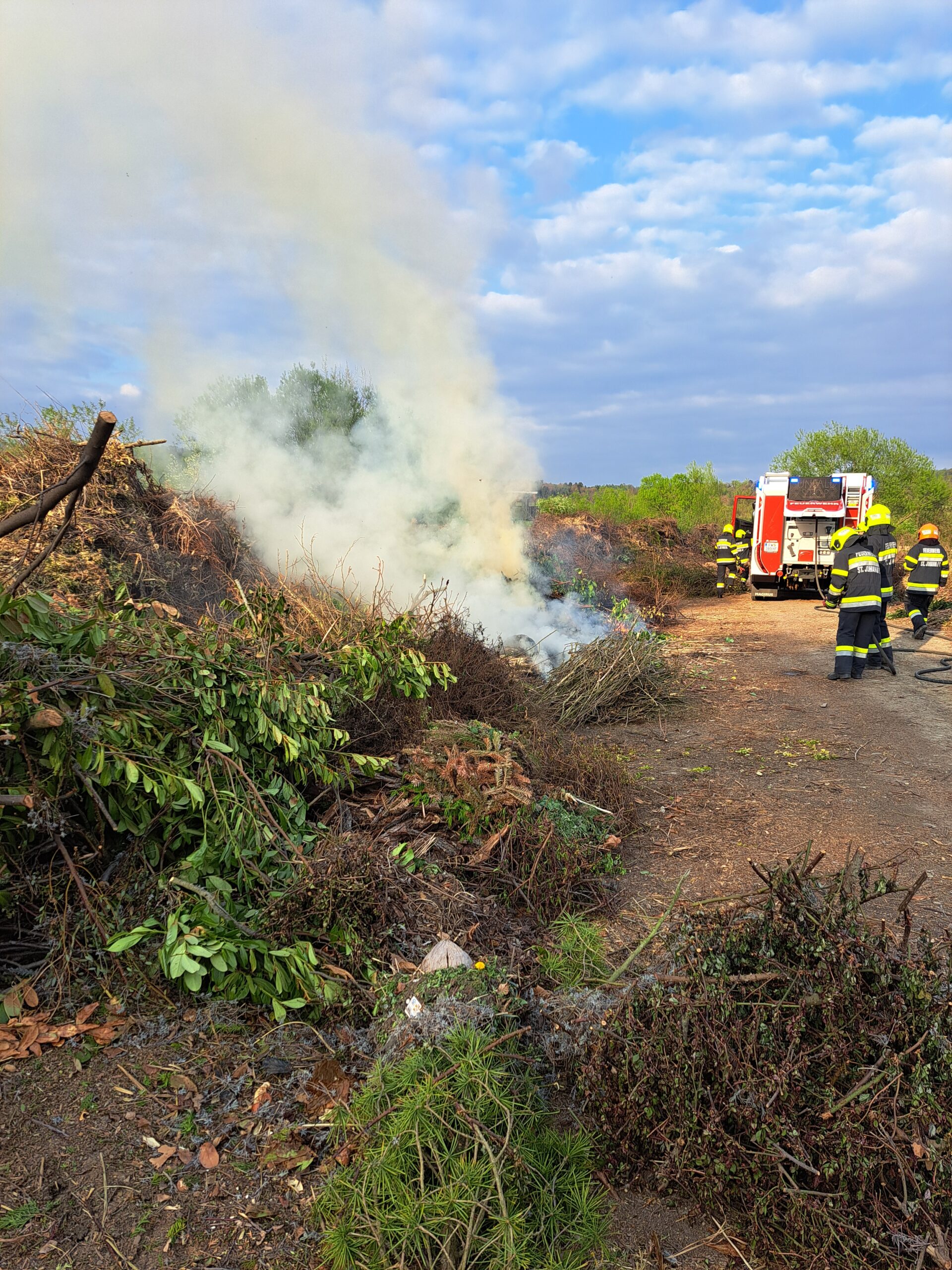 Am frühen Abend des 15. April 2026 wurden wir zu einer Rauchentwicklung in die Au alarmiert. Beim Eintreffen am Einsatzort stellte sich die Lage als Brand eines Grünschnittplatzes in der Entstehungsphase dar.